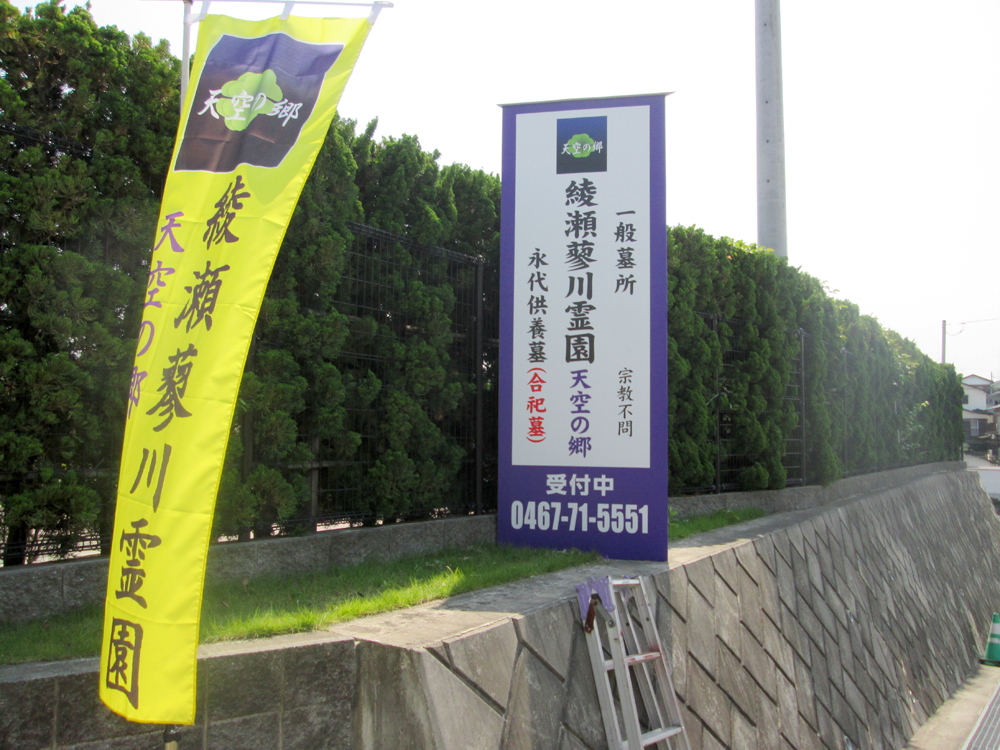 霊園の入り口のシンボルとして訪れる方の目印となる看板です。装飾を排し、必要な情報をシンプルに見せる事で厳かな印象をもたせています。